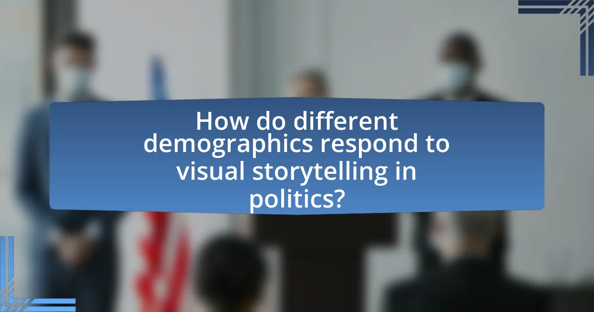 Different demographics respond to visual storytelling in politics in varied ways, influenced by factors such as age, education, and cultural background. Research indicates that younger audiences, particularly those aged 18-29, are more likely to engage with visual content, as they consume information primarily through social media platforms where visuals dominate. In contrast, older demographics may prefer traditional media formats, which can affect their receptiveness to visual storytelling.
