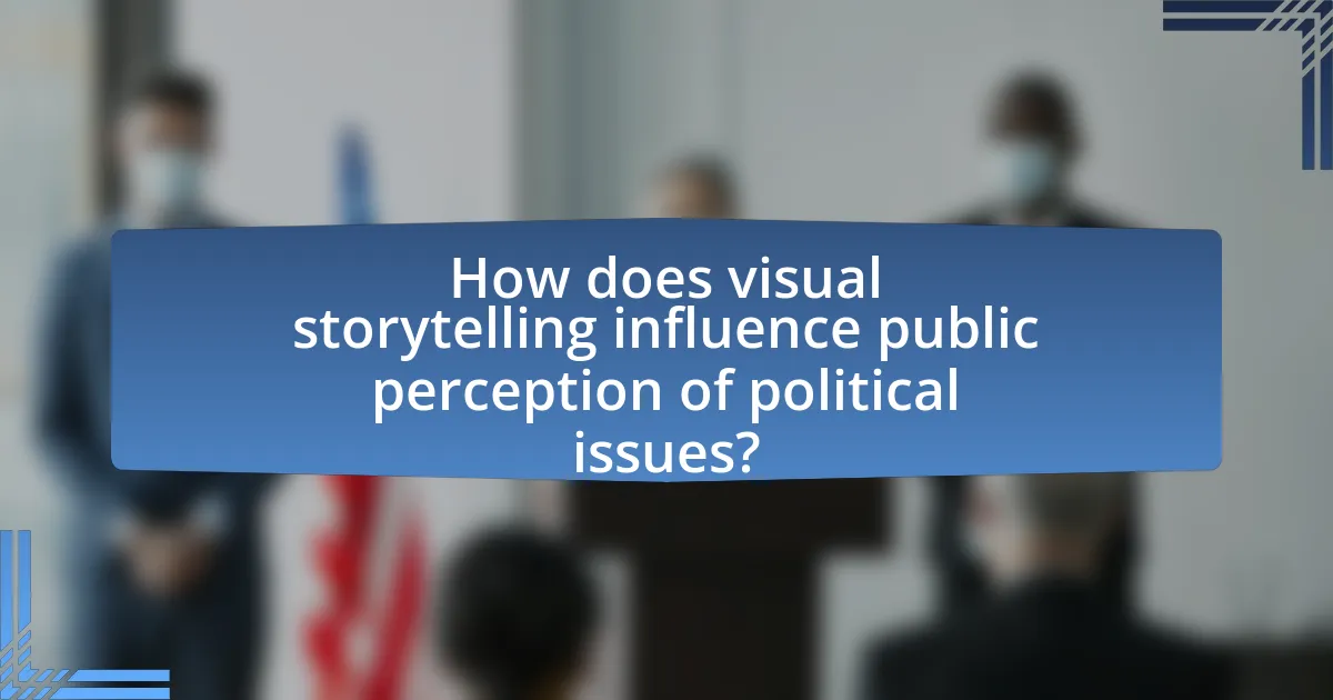 Visual storytelling significantly shapes public perception of political issues by creating emotional connections and simplifying complex narratives. This method engages audiences more effectively than text alone, as studies show that visuals can increase information retention by up to 65%. For instance, political campaigns often utilize infographics and videos to convey their messages, making abstract concepts more relatable and understandable. Research from the Pew Research Center indicates that visual content on social media platforms can lead to higher engagement rates, influencing public opinion and mobilizing support for specific political agendas.